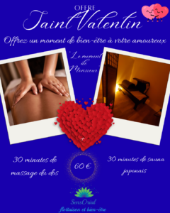 Offrez-lui une pause bien méritée avec 30 minutes de sauna japonais pour éliminer le stress et les tensions, suivies d’un massage du dos pour une détente musculaire profonde.
